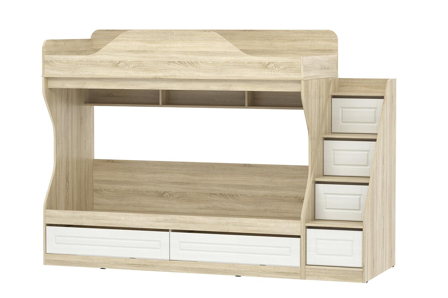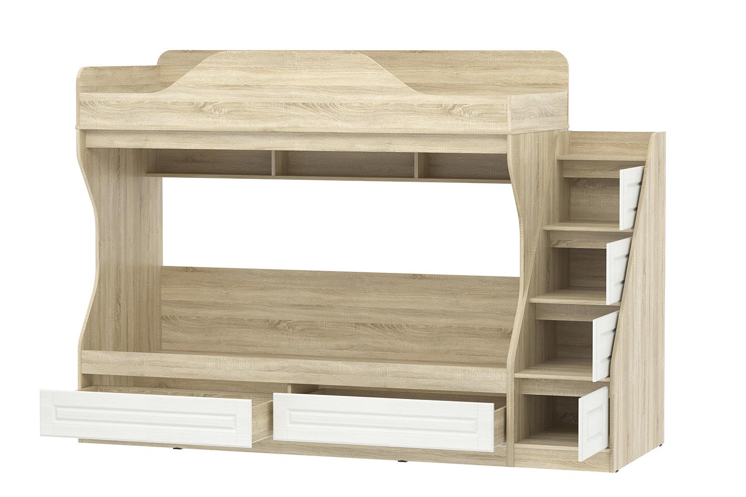Двухъярусная кровать Оливия — это и удобные спальные места для двоих ребят, и вместительная система хранения, включающая широкие выдвижные ящики для белья, полочки для книг и ступени-тумбочки, в которые можно сложить и игрушки, и одежду. Кровать выполнена из прочной ЛДСП с эффектным покрытием и будет отлично смотреться в интерьере любого стиля. Система безопасности модели на высоте, благодаря качеству материалов и продуманной конструкции с задними стенками и высоким фигурным бортиком на верхнем уровне. Каждое спальное место имеет длину 190 см и выдерживает значительный вес, поэтому конструкция подойдет детям любого возраста и послужит вам многие годы.