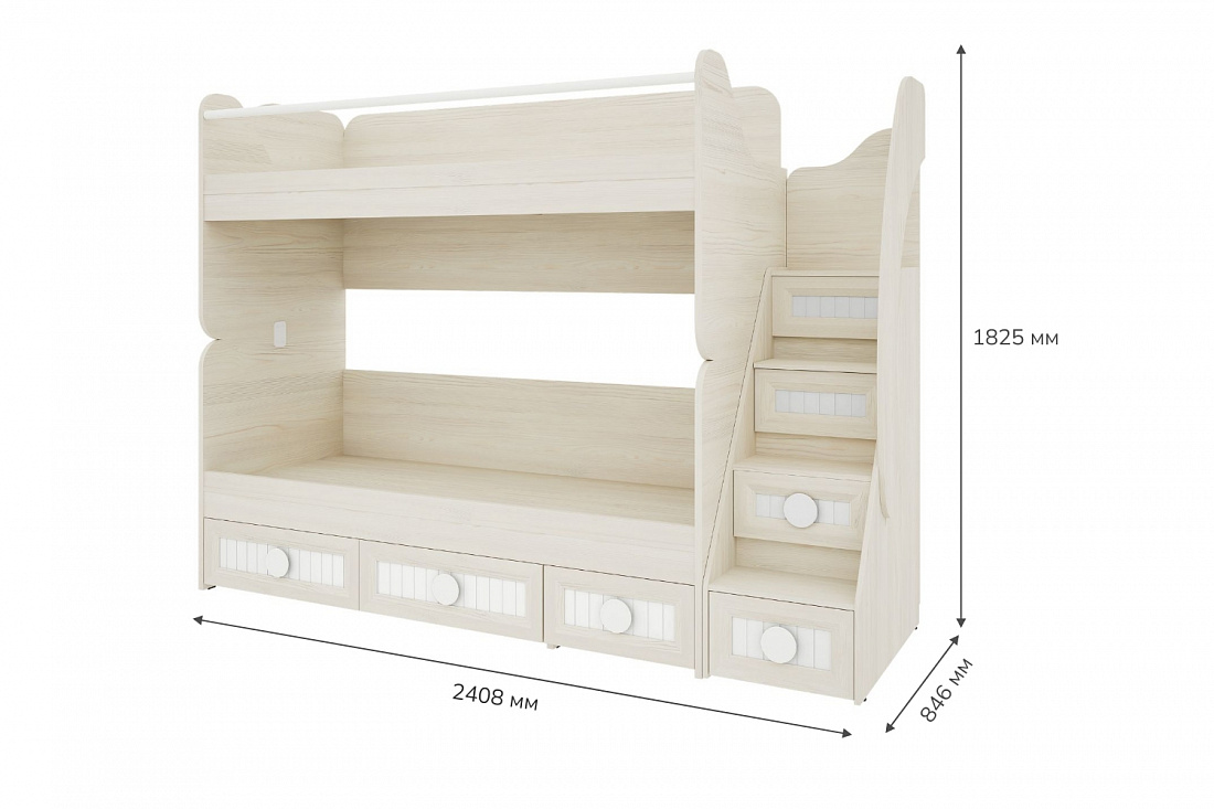 Безопасная, удобная и практичная двухъярусная кровать Scandinavia станет идеальным решением для детской комнаты на двоих детей, обеспечивая максимальную функциональность и стильный дизайн.